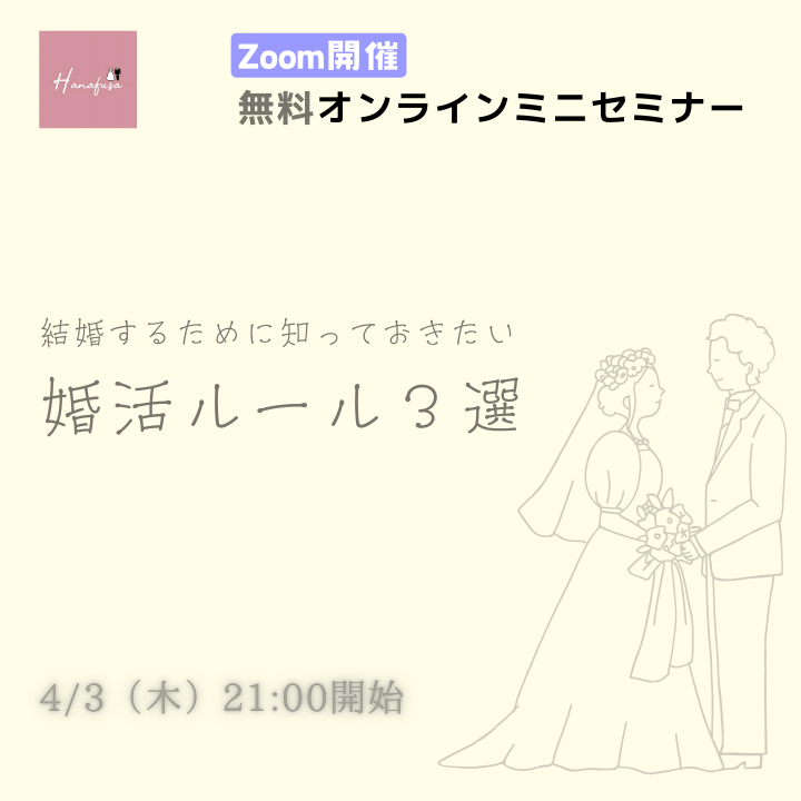 ホーム: ホーム: » 札幌婚活成功セミナー » 【4/3開催】結婚するために知っておきたい婚活ルール3選 無料オンラインミニセミナー » 2025セミナーアイキャッチ (1280 x 720 px) (Instagramの投稿) (11) 2025セミナーアイキャッチ (1280 x 720 px) (Instagramの投稿) (11)By kekkon-hanafusa / 2025年3月17日